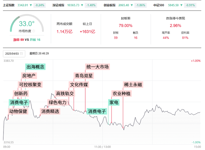 市场全天震荡走低,创业板指领跌,消费电子、高外销占比概念股集体重挫,立讯精密、歌尔股份等多只个股跌停。沪深两市全天成交额1.14万亿,较上个交易日放量1631亿。