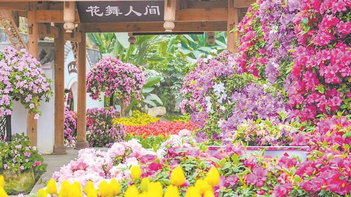记者还了解到,目前新津花舞人间正在举办第十八届杜鹃花节,展现杜鹃的独特意境。此外,除了杜鹃外,这里的晚樱、垂丝海棠、绣球花也开得正好。