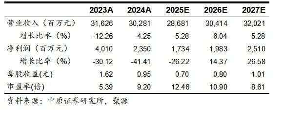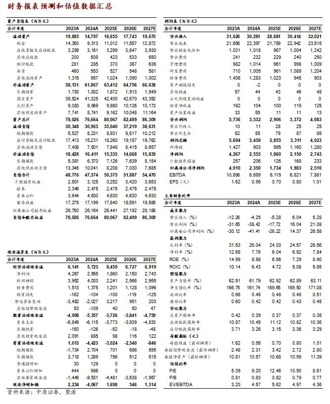 预计公司2025—2027年归属于上市公司股东的净利润分别为17.34亿元、19.83亿元、25.10亿元,对应每股收益分别为0.70元、0.80元、1.01元,按照2025年4月2日8.73元/股收盘价计算,对应PE分别为12.46倍、10.90倍、8.61倍。综合考虑公司盈利能力和高分红比例,基于行业发展前景和公司估值水平,维持公司“买入”投资评级。