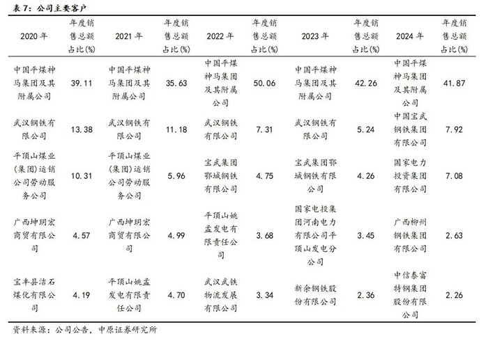 公司优质低硫主焦煤作为一种稀缺资源,具有低硫、低灰、低磷、低碱金属、热态指标好、有害元素少等先天优势,是大型钢焦企业炼焦配煤不可或缺的基础和骨架原料,除了公司控股股东中国平煤神马集团及其附属公司,公司的主要销售客户还包括武汉钢铁、宝武集团等,且长协煤占比高。