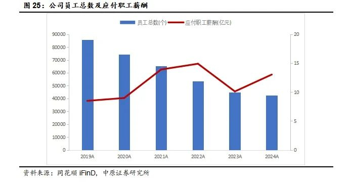 公司通过实施主辅分离降低成本。2024年公司完成4家选煤厂、天力工程处和八矿后勤辅业分离近600人。截至2024年末,公司员工总数已降至42366人。