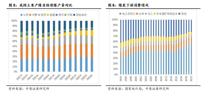 从消费端看,在未来相当长的时间内,煤炭作为我国主体能源的地位不会改变。根据2024年9月国家统计局发布的《中国统计年鉴2024》,2022年我国电力及热力用煤占比约56%,呈逐年上升态势。