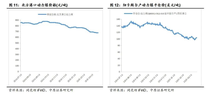 受进口煤炭冲击,供需宽松,下游建材等行业煤炭需求增长不及预期等影响,自进入2024年冬季以来,我国煤炭价格快速下跌。炼焦煤方面,2025年4月1日,全国主要港口炼焦煤平均价为1295元/吨,2025年累计下跌8.68%;平顶山产主焦煤车板价为1460元/吨,2025年累计下跌23.96%。动力煤方面,2025年4月1日,北方港口动力煤价为675元/吨,2025年累计下跌12.34%;纽卡斯尔产动力煤为103美元/吨,2025年累计下跌17.30%。