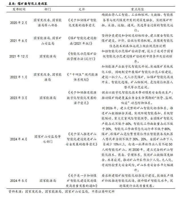 2024年4月,国家矿山安监局等七部门发布了《关于深入推进矿山智能化建设促进矿山安全发展的指导意见》,提出到2026年,建立完整的矿山智能化标准体系;到2030年,建立完备的矿山智能化技术、装备、管理体系。2023年,公司发行可转债,募集资金主要用于煤矿智能化建设改造项目。2024年,公司建成智能化采煤工作面10个、智能化掘进工作面30个;对矿井主煤流运输系统和井下固定场所实施自动化改造,全部实现远程控制、有人巡检、无人值守;煤矿机电运输系统自动化率由上年的79.8%提升至95.7%。2025年,公司生产经营投资计划为41.49亿元,主要用于矿井基本建设项目投入、矿井水平接替及技术改造项目、系统优化、固定资产更新及改造、维持简单再生产、煤矿智能化建设、矿井安全生产灾害治理投入等方面。