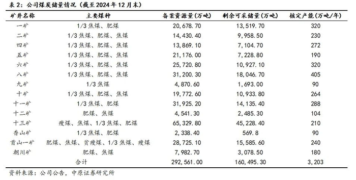 1. 河南煤炭产量最大上市煤企、中南地区最大的炼焦煤生产企业