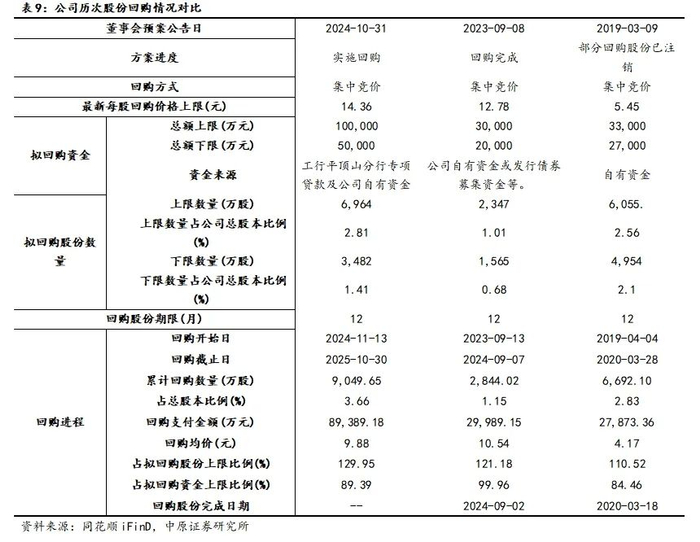 公司连续开展股份回购,维护股价,稳定市场信心。公司于2023年9月开启总额2至3亿元股份回购,并于2024年9月4日顶格完成此次回购。2024年10月31日,公司利用国家对上市公司回购股票的支持政策,开启新一轮股份回购,此次股份回购的资金总额为5—10亿元。截至2025年3月末,公司累计回购9049.65万股。