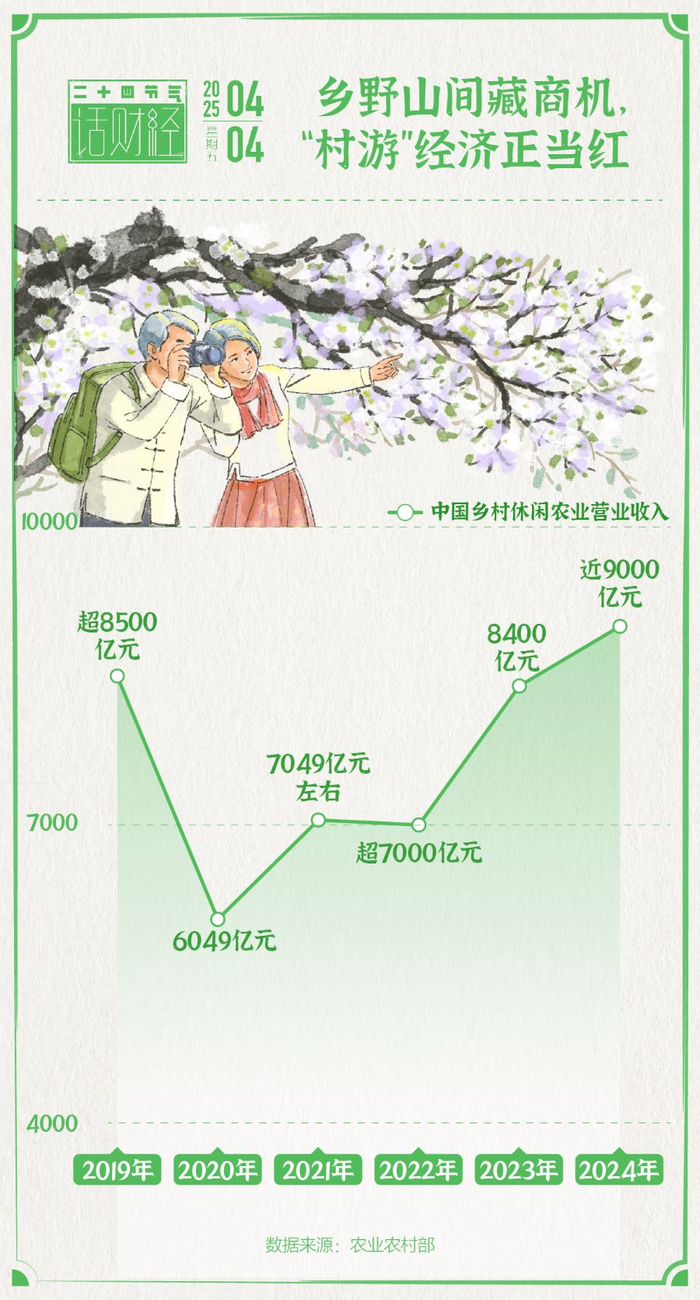 日益丰富的乡村旅游业态勾勒出“向往的生活”,也带来红红火火的乡村经济。经文化和旅游部数据中心测算,2025年一季度,全国乡村旅游接待总人次为7.07亿,同比增长8.9%;全国乡村旅游接待总收入4120亿元,同比增长5.6%。