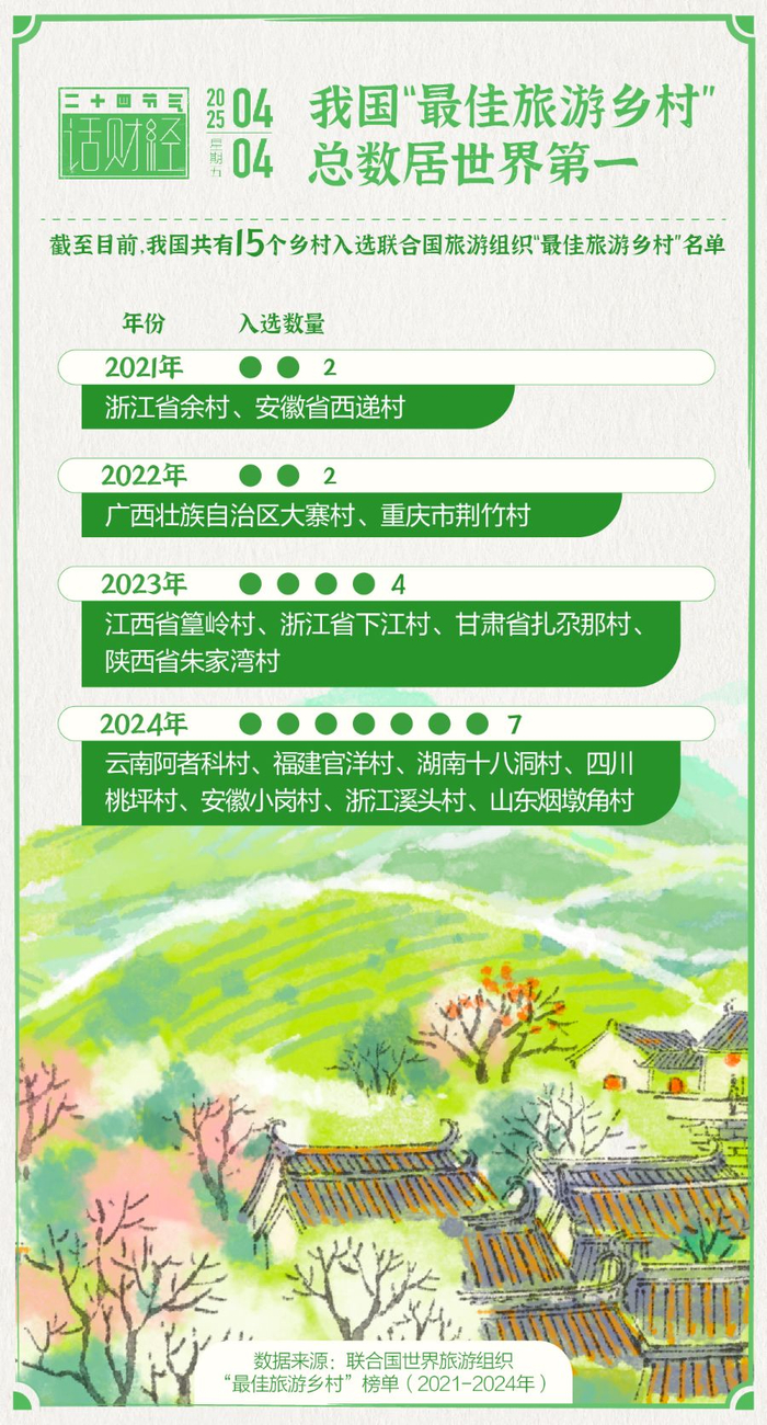 随着乡村旅游市场持续升温,越来越多宝藏乡村跃入大众视野。浙江安吉余村依托竹海打造生态旅游典范,湖南十八洞村凭借古苗寨风情吸引众多游客探访......各地乡村凭借其独特魅力解锁“流量密码”的同时,也打造出含金量满满的文旅名片。截至目前,我国共有15个乡村入选联合国旅游组织“最佳旅游乡村”名单,数量居世界首位。