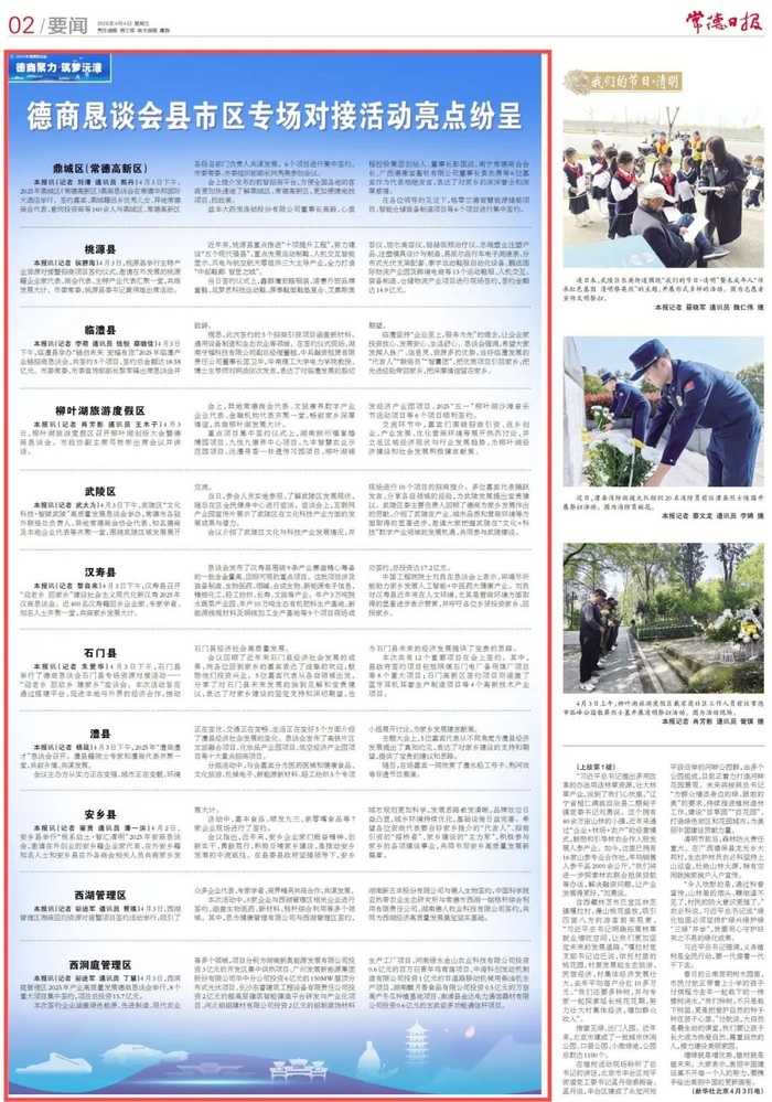 4月3日,西洞庭管理区2025年产业高质量发展德商恳谈会举行,8个重大项目集中签约,项目总投资15.7亿元。