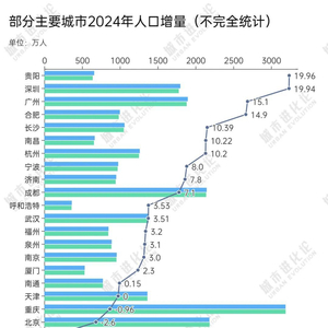 这还不算,去年,贵阳19.96万的人口增量,更力压深圳(19.94万人)、广州(15.1万人)、杭州(10.2万人)等近年的“抢人”赢家和塔尖城市,堪称最大“黑马”。