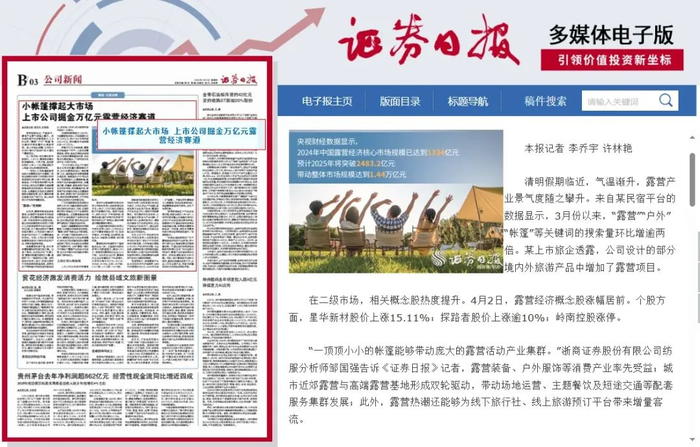 艾媒咨询CEO兼首席分析师张毅在接受《证券日报》记者采访时表示,目前,全国范围内预计有超过三万个各具特色的露营基地。这些露营基地的建设不仅为游客提供了多样化的选择,还对周边民宿、景区等业态的景气度起到了显著的拉动作用。