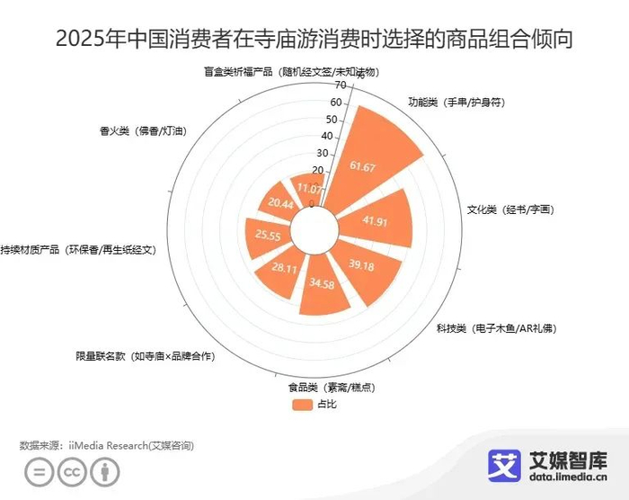 iiMedia Research(艾媒咨询)调研数据显示,2025年消费者寺庙文创消费呈现明显分层,35.88%的消费者主动寻求特色产品,36.53%的属偶然触发购买欲望。