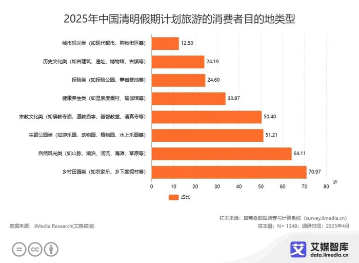 iiMedia Research(艾媒咨询)数据显示,在2025年中国清明假期计划旅游的消费者目的地类型中,宗教文化类场所以50.40%的占比跃进前五。