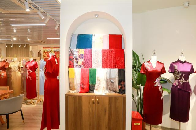 传统和新颖相结合,让老店绽放出了新光芒。品牌转型以来,母女俩在张堰辗转重新挑选店面地址,对她们来说,租金相对低、周边环境安静的金来源广场铺面四楼恰好适合,经小马设计装修,整体新中式的门店风格呈现新潮、美观、雅致的审美感受,也为顾客精挑细选提供了更舒适的空间、氛围,用裁和缝的手艺传递温度和美好祝福。