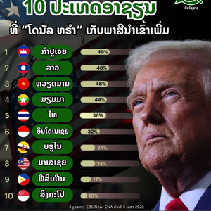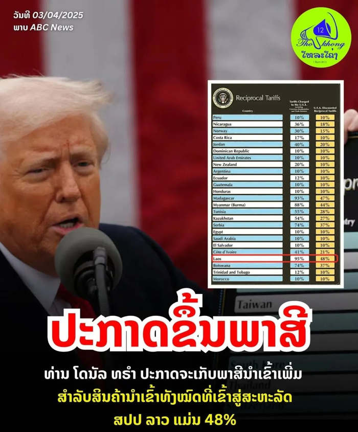 老挝成为受美国最新公布的对等关税政策影响最严重的国家之一。特朗普对老挝征收的“对等关税”在东盟国家中排第二。