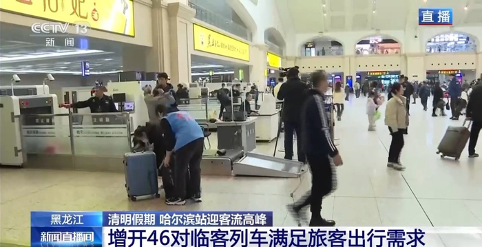 据铁路部门最新数据,今天(4日)哈尔滨站预计发送旅客9.3万人次,到达旅客6.6万人次,清明假期期间,哈尔滨站预计到发旅客总量将超过44万人次