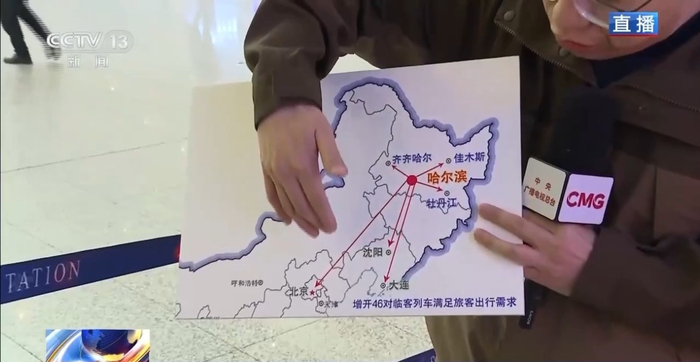 数据显示,假期期间黑龙江省外客流主要集中在北京、沈阳、大连等方向,黑龙江省内则以齐齐哈尔、佳木斯、牡丹江等中短途线路为主。为此,铁路部门已经加开46对临客列车,其中省外方向增开哈尔滨西至北京朝阳、大连北的高铁,省内加密了哈齐、哈牡、哈佳等热门线路的动车和普速列车班次。