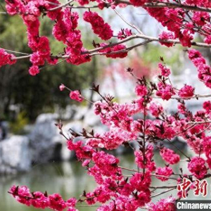 资料图:游客在山东省临沂市郯城县新村银杏古梅园里踏青赏花。李结义 摄