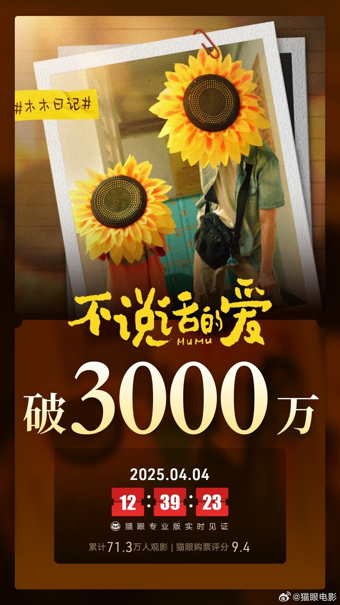 据猫眼专业版数据,电影《不说话的爱》上映2天,总票房破3000万。