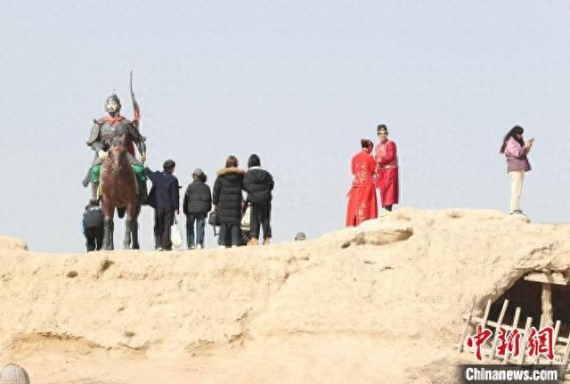 4月4日,游客在位于宁夏银川市的镇北堡西部影城内赏景游玩。当日是清明假期的第一天,景区内游人如织。中新社记者 于晶 摄
