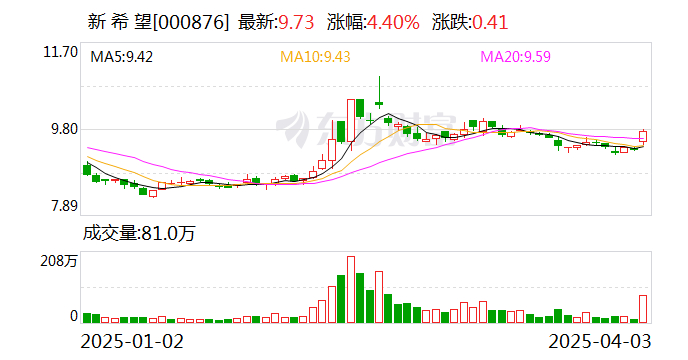 4月2日晚,新希望发布2024年的年度业绩快报和2025年的一季度业绩预告。2024年其实现归母净利润4.74亿元,同比增长90.05%;扣非净利润6.16亿元,同比增长113.37%,实现扭亏为盈;2025年一季度其预计实现归母净利润4.30亿元~5亿元,同比增长122%以上。