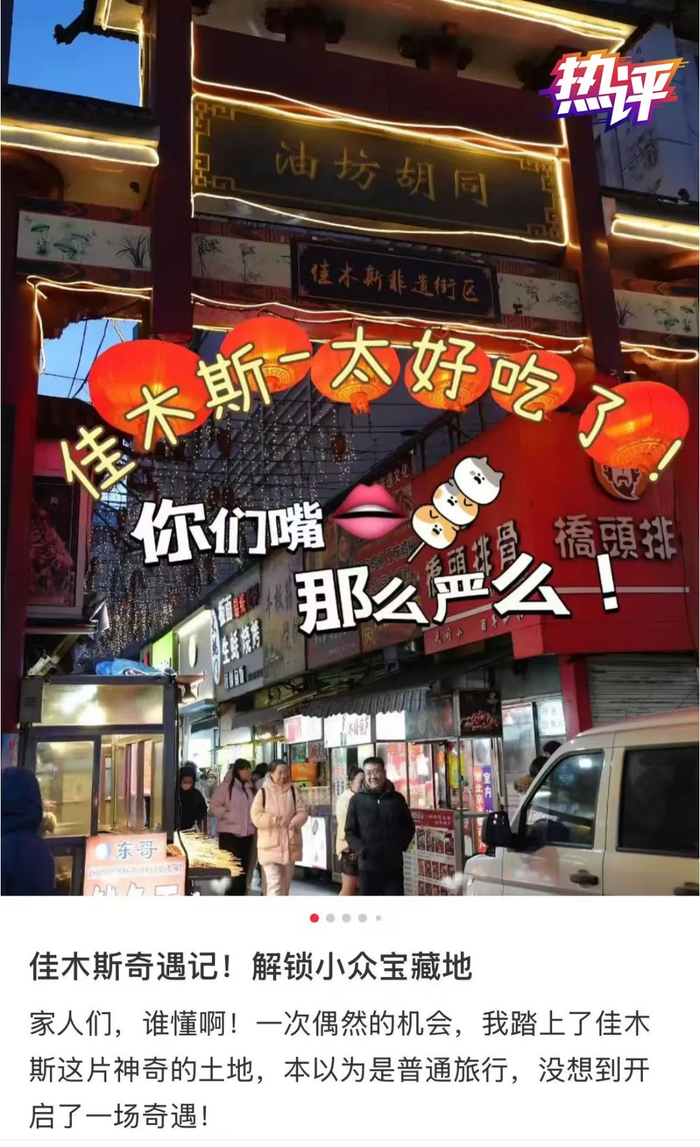 “进了这条街是童年,走出这条街是现在。”“只有老佳木斯人才知道油坊胡同的魅力!”最近,很多老佳木斯人因为家乡上了“国字号”景点名单而兴奋不已。在文旅部公布的第四批国家级旅游休闲街区名单里,黑龙江省佳木斯市向阳区油坊胡同美食步行街榜上有名。这个早年间的小吃铺聚集地,蛋糕和烤串的味道是一代佳木斯人的童年记忆,现在已有不少在外地打拼的佳木斯人表示正在计划回故乡再体验一把记忆中的美食,更有不少“吃货”网友开始策划起了旅游攻略。或许就因为这一次的“上榜”,佳木斯将成为很多人东北之行的新去处。