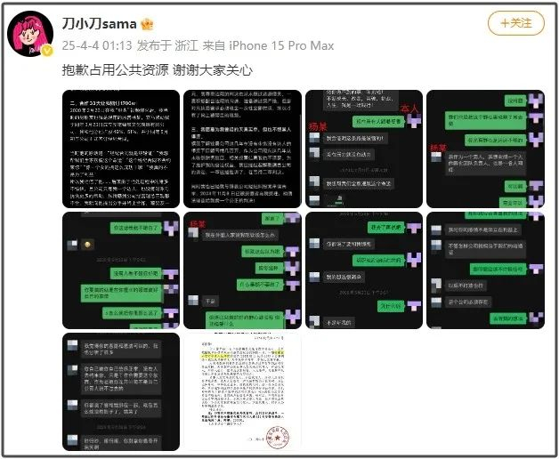 4月4日凌晨,@刀小刀sama 发文说明她是去法院配合调解执行她与锦晨公司的经纪合同纠纷,现已回家。