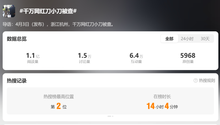近日,千万粉丝网红“刀小刀”被警方带走调查,引发关注,相关话题登上微博热搜,引发热议。