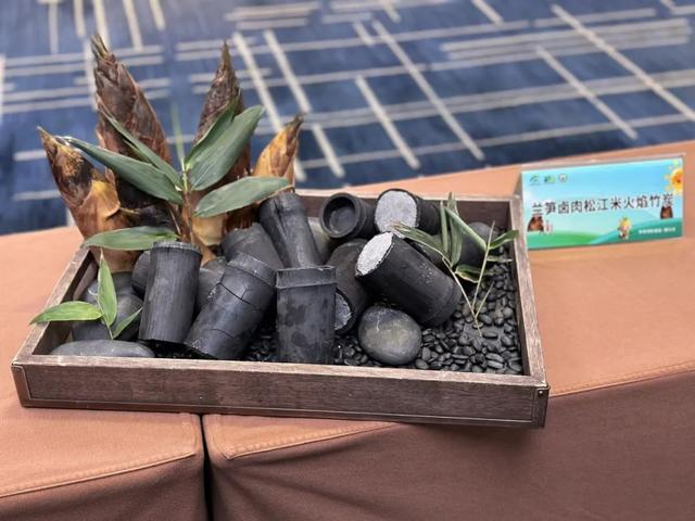 上海佘山世茂洲际酒店中餐行政总厨丁奇峰带来“兰笋卤肉松江米火焰竹炭”,独特的造型“弹眼落睛”。“我创作这道菜的初衷是希望还原小时候的味道。用笋衣包裹红烧肉、兰笋跟米饭,再进行烤制,敲开竹筒的时候,笋香、饭香、肉香交织,扑鼻而来。”丁奇峰介绍道。上海科创职业技术学院参赛选手丁毅的“云间东坡醉千层”将东坡肉的咸甜与兰笋的清香结合,再加青豆和冬瓜作为点缀,尽显诗意。
