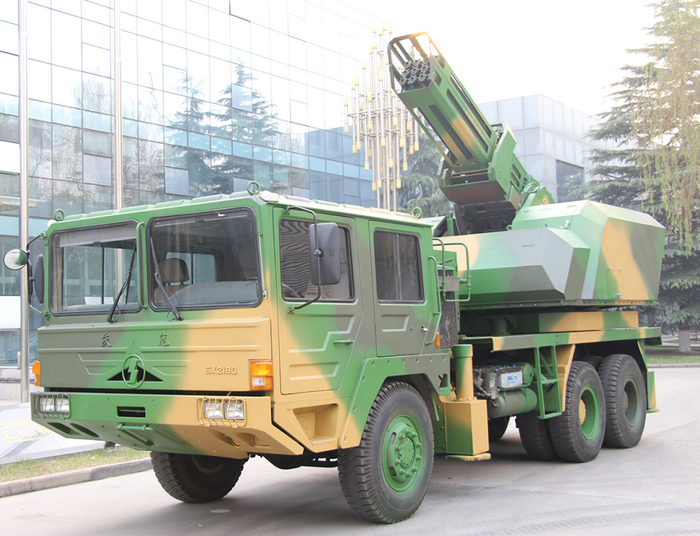 除了火力部分,中国兵器工业集团有限公司官方媒体报道中出现的“金属风暴”武器系统还配备了雷达、光电跟踪系统,并且全部集成在一辆6×6军用卡车底盘上,显示出很高的技术成熟度。而且,根据总设计师余斌的发展规划,这套“金属风暴”武器系统还可以装备在不同的平台上,比如8×8轮式装甲底盘、履带式底盘,甚至舰艇上,作为海上防空反导系统使用。