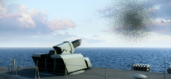 在弹药方面,国产新型“金属风暴”武器系统主要采用35毫米可编程预制破片弹(也称为AHEAD弹)以及专门为其研发的串并式弹药。其中,AHEAD弹由于发射后会炸开弹体,释放出大量钨合金子弹丸,非常适合拦截中小型以及微型无人机,比如在俄乌冲突中大行其道的自杀式FPV无人机、巡飞弹等。其散布的钨合金子弹丸数量多,覆盖面积大,所具备的动能也足以击落、毁伤各型无人机。但是,如果对付速度更快、弹体结构更为结实的导弹,那么就要使用串并式弹药了。