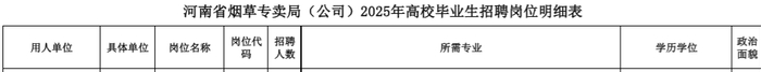 1.河南省烟草专卖局(公司)2025年高校毕业生招聘岗位明细表