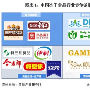 企业竞争类型主要分为宠物冻干食品企业和其他冻干食品企业。其他冻干食品类型有冻干水果、冻干蔬菜和冻干方便食品等,其生产企业产品布局互有重合,而布局环节各有不同,竞争企业类型可分为领先品牌商、领先加工企业以及同时布局品牌和生产线的领先企业,具体如下: