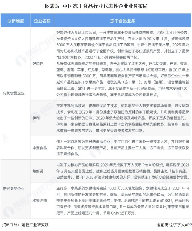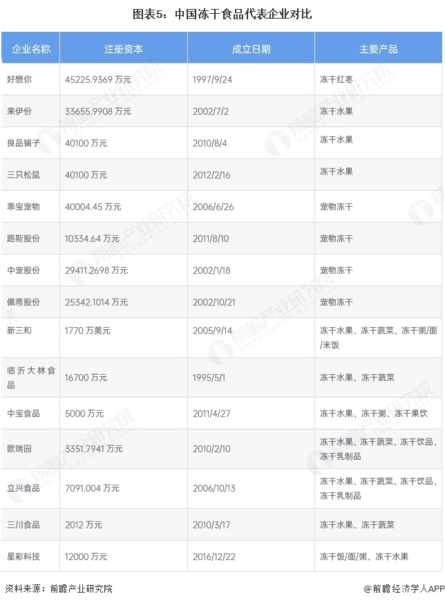 我国冻干食品行业的主要企业有好想你、来伊份、良品铺子等,大部分企业主要布局冻干水果和冻干蔬菜产品,少部分企业如新三和、星彩科技等布局冻干粥/面/米饭等冻干方便食品。