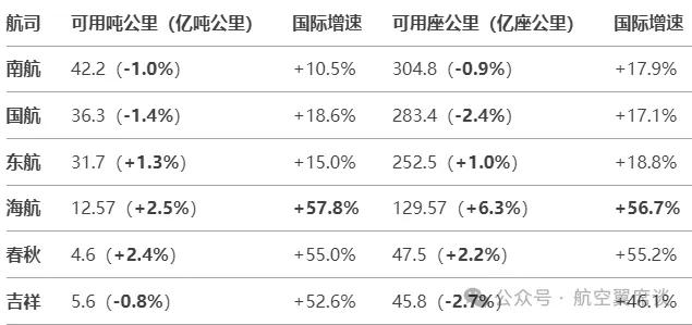 海航国际运力狂飙:国际可用吨公里增速57.8%,主攻欧美精品航线,宽体机利用率提升至12.5小时/日。