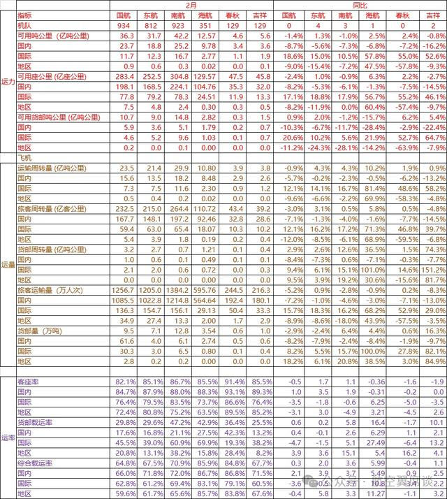 进入2025年2月,航空公司们的表现又会怎么样呢?