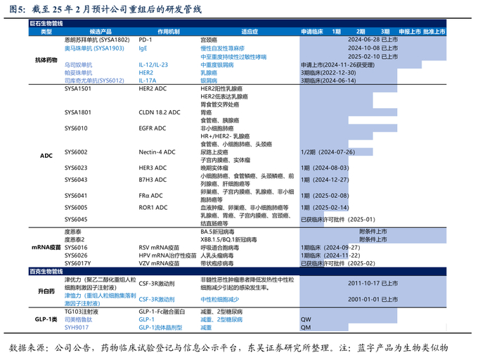 例如,Claudin18.2 ADC新药SYSA1801于2022年授权给Elevation Oncology,但近期Elevation因该产品在美国的Ⅰ期临床数据未达预期而终止了海外开发。Nectin-4 ADC新药SYS6002于2023年授权给Corbus Pharmaceuticals。ROR1 ADC新药SYS6005于2025年2月授权给Radiance Biopharma。在引进方面,石药引进了康宁杰瑞的HER2双抗ADC产品JSKN003,交易总额超过30亿元。
