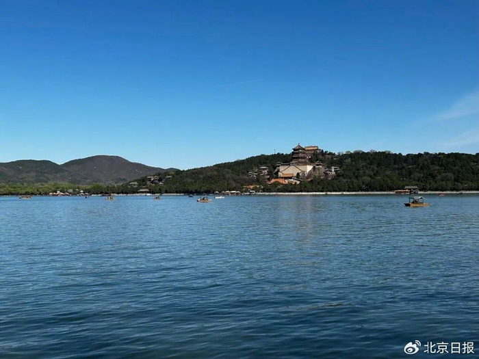 从颐和园南如意门、西门入园,青松翠柳百花盛开,白花山碧桃、连翘、丁香点缀其间,豳风桥沿线品霞桃、品虹桃正值最佳观赏期,桃花灼灼吸引不少游客留下“临水照花”的美图。走上知春岛,仲春时节的西山映入眼帘,垂柳拂面,佛香阁、十七孔桥点缀在昆明湖畔,游船在湖面上泛起波光粼粼。
