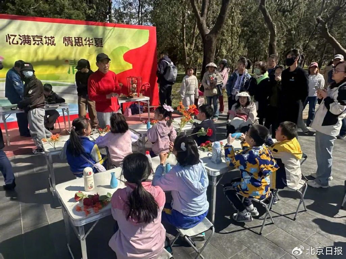 除了踏春赏花,“传承非遗文化 感受天坛魅力”非遗手作体验活动在天坛公园西二门内举行,吸引众多游客前来,在春日里开启一场别开生面的文化之旅。此次活动以传承非遗为核心,分为绢花制作、风筝制作两大体验环节。活动通过现场教学、互动体验等形式,带领游客制作精美的绢花和风筝,感受传统手工技艺的独特魅力。