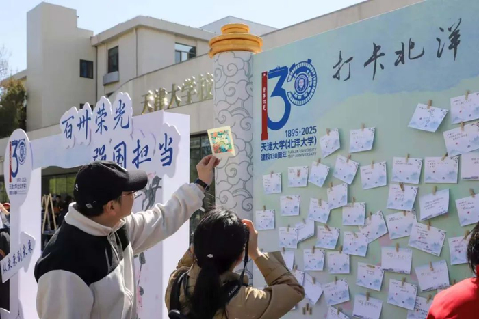还有羽毛球世界冠军陈金的公开课上,手把手指导杀球技巧;女教授协会“咏絮书会·海棠季”以女性视角探讨家国担当;校园数处舞台,各个文艺团体展现出“文艺大学”的艺术气息……校友之家的留言板写得密密麻麻,有89岁老校友写下“愿母校跻身世界一流”,也有“我要考进天大”的中学生愿景。