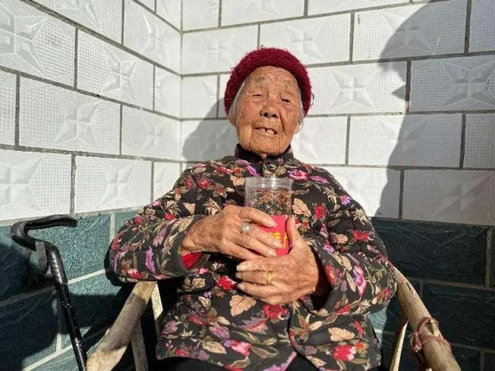 见到曹华亭时,她正坐在藤椅上靠墙晒太阳。老人听力几近丧失,但当我们提到弟弟曹炳忠的名字时,她浑浊的眼睛瞬间亮了起来。