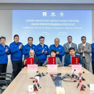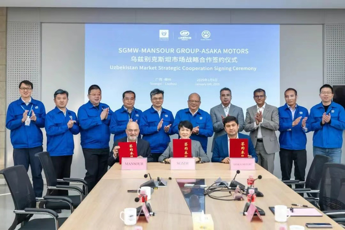 (今年1月,上汽通用五菱与曼苏尔集团、ASAKA汽车共同签署《乌兹别克斯坦市场战略合作协议》,正式进军中亚。受访者/图)