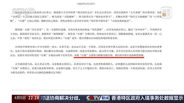 赖清德出台“17项策略”的当天,他在所谓“国安高层会议”上,将大陆界定为“境外敌对势力”,这一表述迅速引起了各方警惕。国台办第一时间便正告“台独”分裂势力,如果胆敢突破红线,将不得不采取断然措施。国防部4月2日明确表态,联合演训是对“台独分子”的有力警慑。
