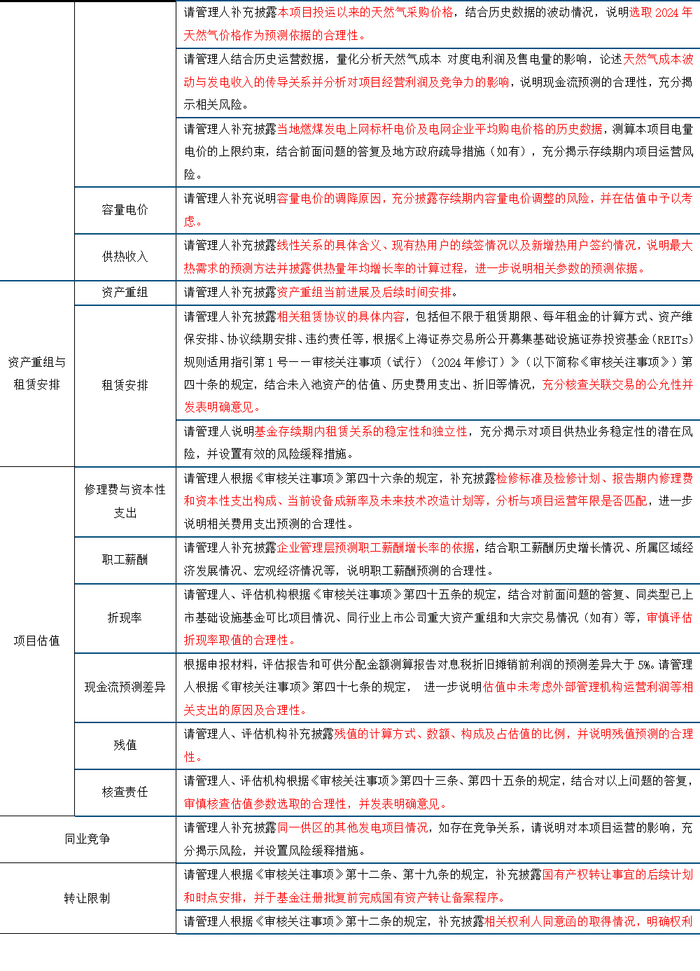 4月3日,华夏华电清洁能源REIT获上交所问询,监管对项目运营及估值的关注进一步加深,显示出强化REITs项目稳定运营和估值合理性的监管趋势。监管关注点主要集中于项目运营模式、资产重组与租赁安排、项目估值以及同业竞争四个方面,同时在转让限制、对外借款、基金治理等其他多个方面也提出了补充披露、量化分析和风险揭示等要求。通过详细评估项目的现金流预测、资本性支出及折现率取值,监管层旨在确保项目的稳定运营和估值的合理性。