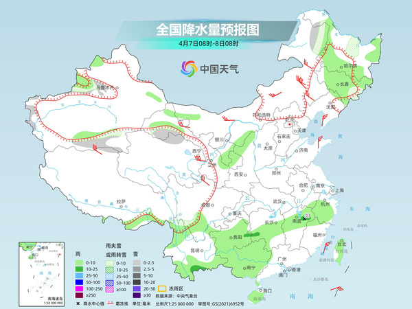 同时,据中央气象台预计,明天(7日),新疆南疆西部山区、内蒙古东北部、黑龙江中北部、西藏东南部、青海北部等地部分地区有小雪或雨夹雪。新疆伊犁河谷、甘肃东部、宁夏南部、陕西北部、黑龙江南部、吉林大部以及西南地区东南部、江南地区中北部、华南西部、海南岛、台湾岛等地部分地区有小到中雨,局地有大雨。