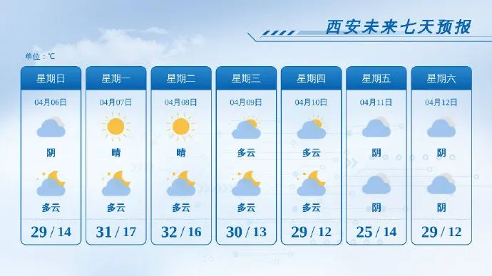 那西安未来几天天气情况如何呢?据西安气象消息,近期西安市维持干燥少雨态势,以多云天气为主,最高气温快速升高,森林火险气象风险等级持续偏高,需特别注意防范。