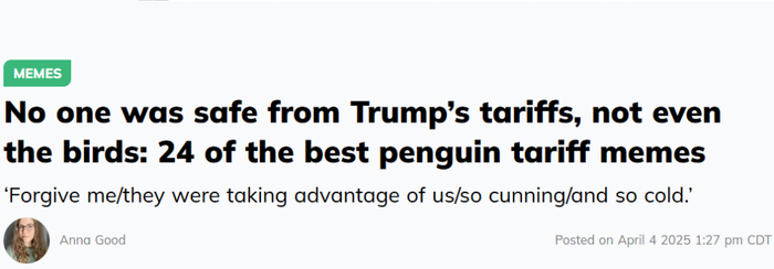 新闻标题翻译:没有人免受特朗普关税,鸟也不例外:24个最好的“企鹅税”网梗