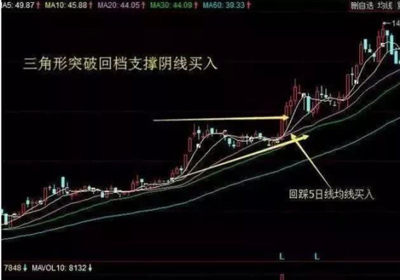 2、立桩量回档,阴线买入法股市价格在上升行情中成交量突然放出巨量,进而股价开始拉升,到一定的点位开始盘整,回踩10日均线阴线买入,明后天,会再次突破