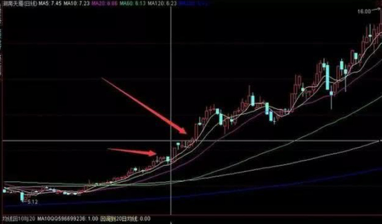 第一种方法就是均线在形成上涨趋势之后,均线回踩10日均线,之后进行操作,这个方法前提是近期有量,连阳之后回踩10日不破,第二天必大涨!