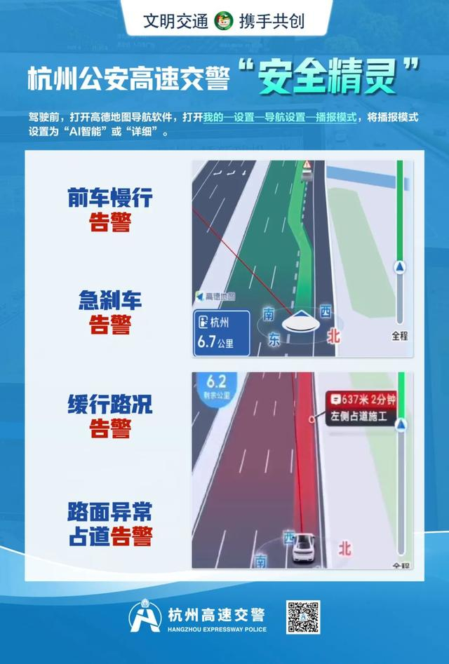 杭州公安高速交警提醒:大流量下切勿占用应急车道!高速出行请提前规划路线,尽量错峰错时,推荐打开高德导航系统,使用“杭州高速安全精灵”安全提醒功能。如遇排队缓行不要急躁,不要随意插塞变道,更不要违法占用应急车道(硬路肩),如遇长时间排队缓行,建议就近收费站下高速改走地方道路。